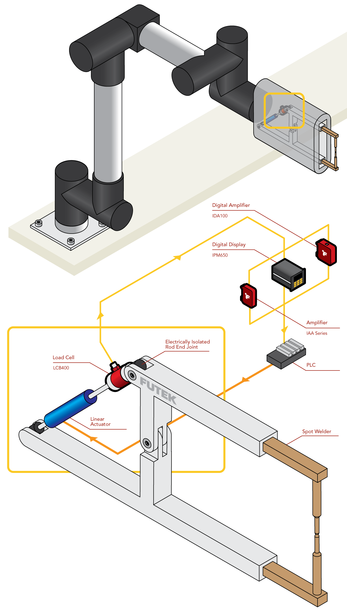 1、把LCB400安裝在驅動電機延軸上,來控制點焊夾具的力。
